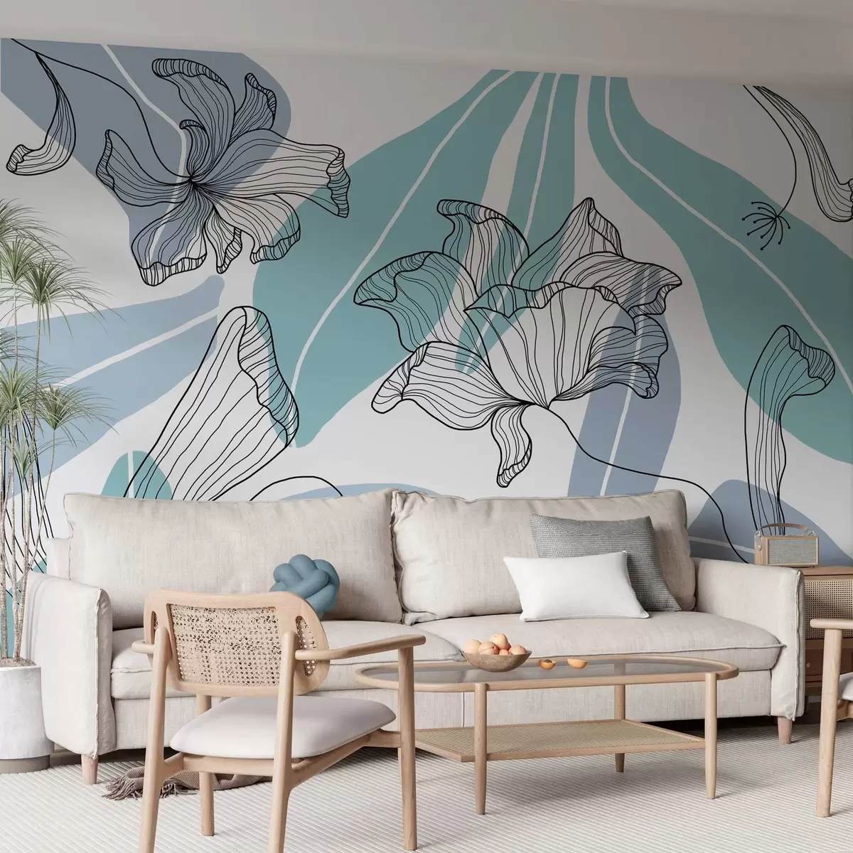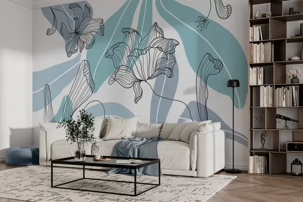 Fotomurales hojas y flores abstractas en tonos azules Nr. w04499v2