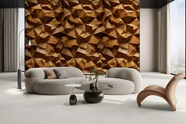 Fotomurales imitación de una pared con relieve angular hecha de madera Nr. w04632