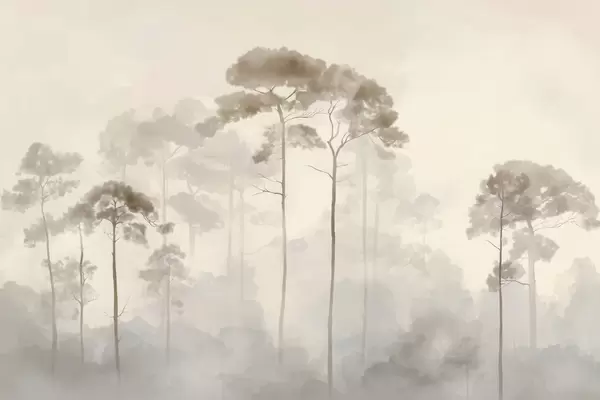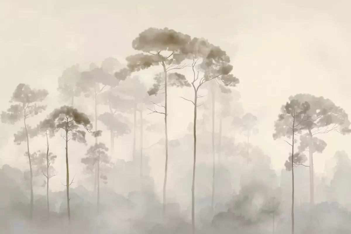 Fotomurales siluetas ligeras de pinos en estilo acuarela Nr. w04634