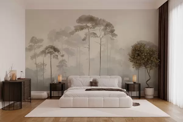 Fotomurales siluetas ligeras de pinos en estilo acuarela Nr. w04634