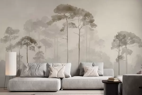 Fotomurales siluetas ligeras de pinos en estilo acuarela Nr. w04634
