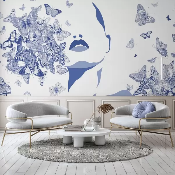 Fotomurales Silueta de un rostro entre mariposas Nr. w04778v1