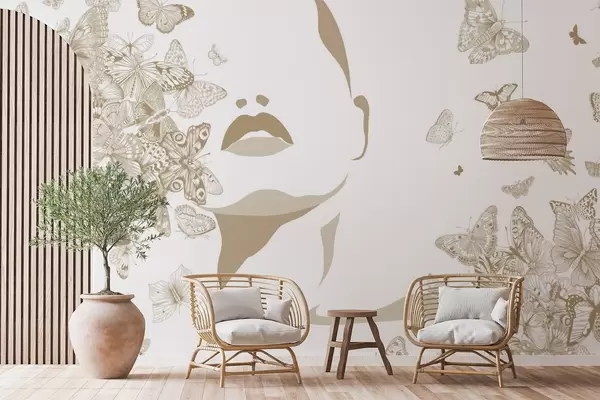 Fotomurales Silueta de un rostro entre mariposas Nr. w04778v2