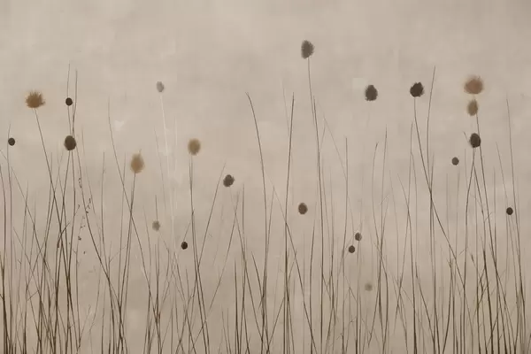 Fotomurales Hierbas finas y cabezas de semillas esponjosas sobre un fondo beige cálido. Nr. w04793