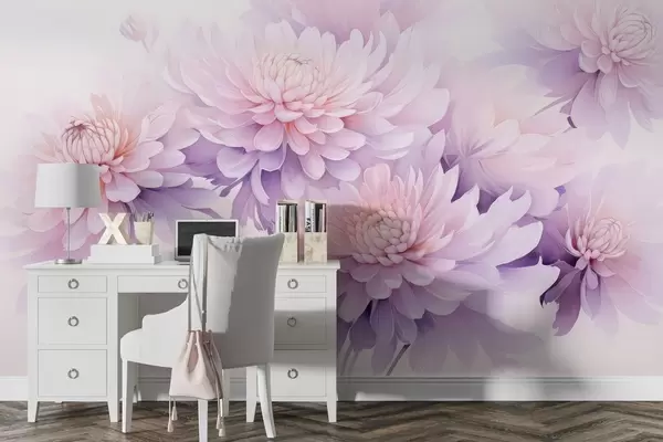 Fotomurales Exuberantes crisantemos pintados con acuarela sobre un fondo claro. Nr. w04832