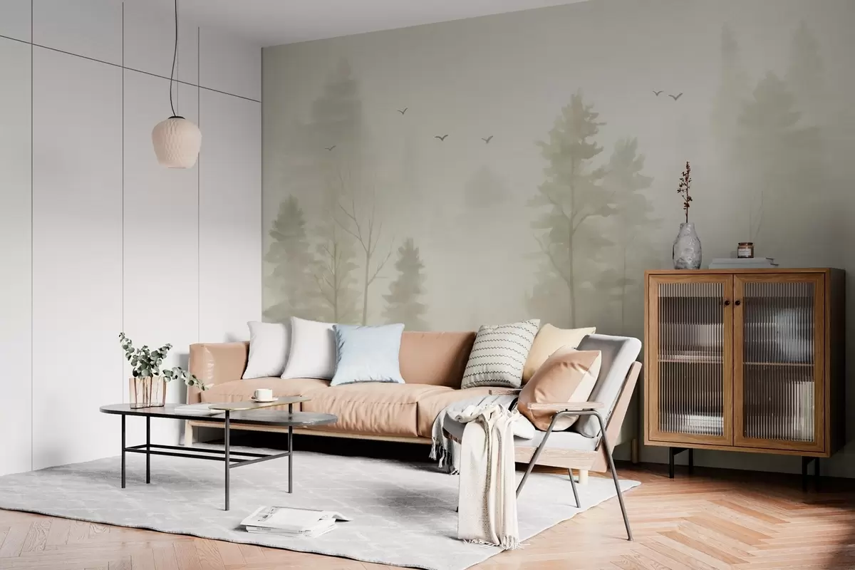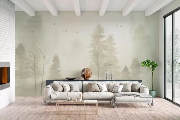 Fotomurales Bosque aéreo en tonos beige, estilo acuarela. Nr. w04872