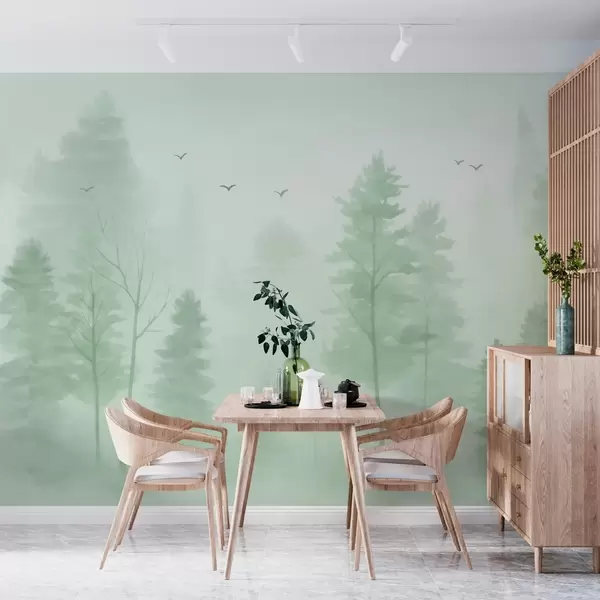 Fotomurales Bosque aéreo en tonos verdes, estilo acuarela Nr. w04872v1
