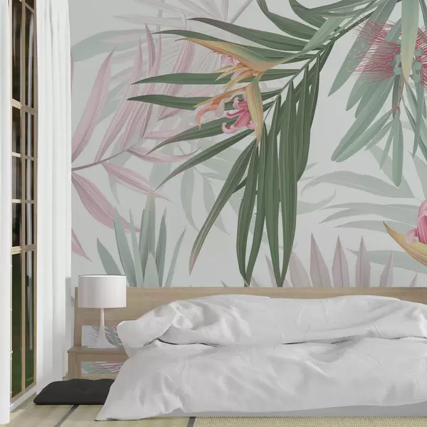 Fotomurales Strelitzia entre el follaje de las palmeras Nr. w04896v2