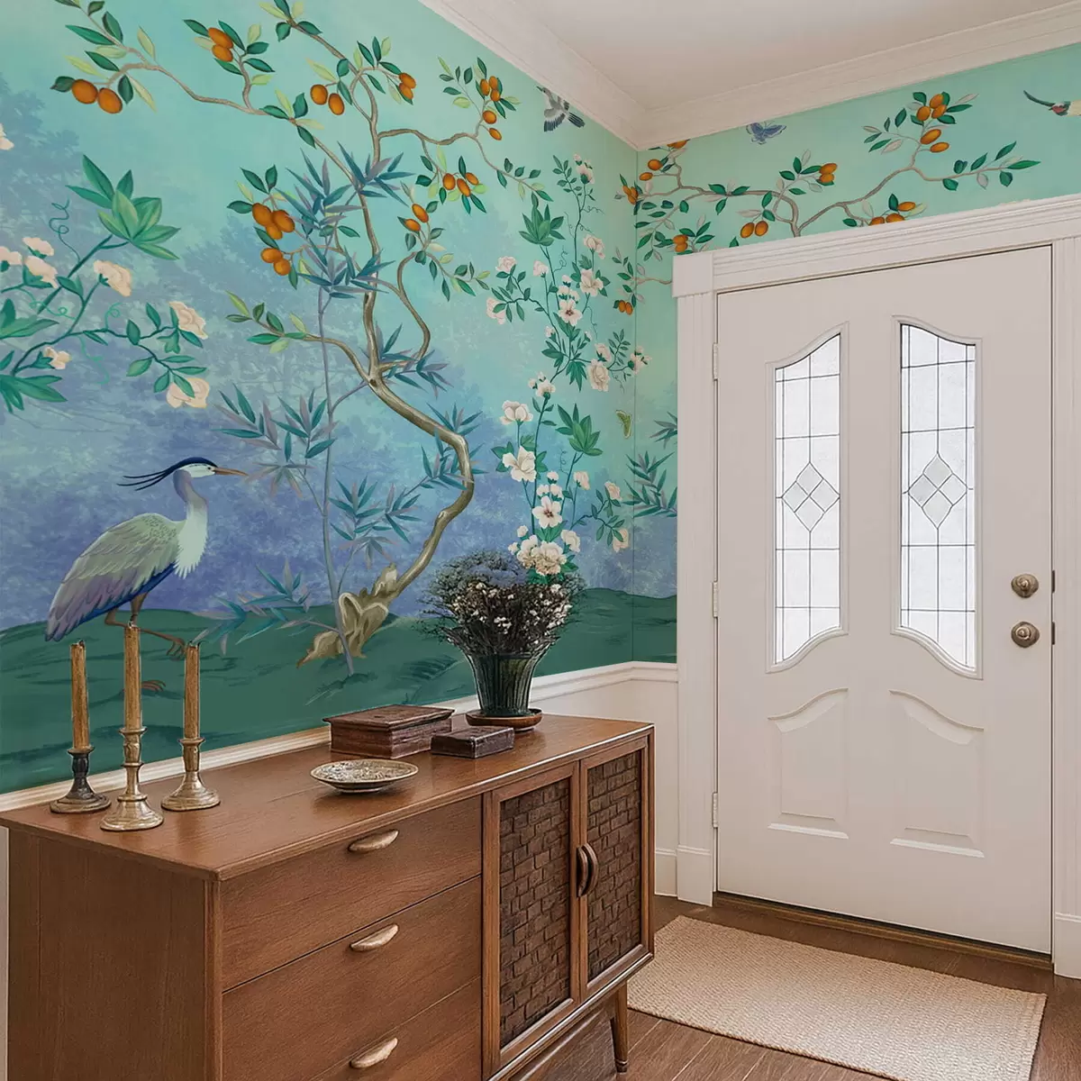 Se puede limpiar suavemente con una esponja suave. Los murales de pared con recubrimiento de barniz pueden limpiarse con agua.