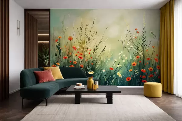 Fotomurales Flores y hierbas del prado en un estilo pictórico suave. Nr. w05015