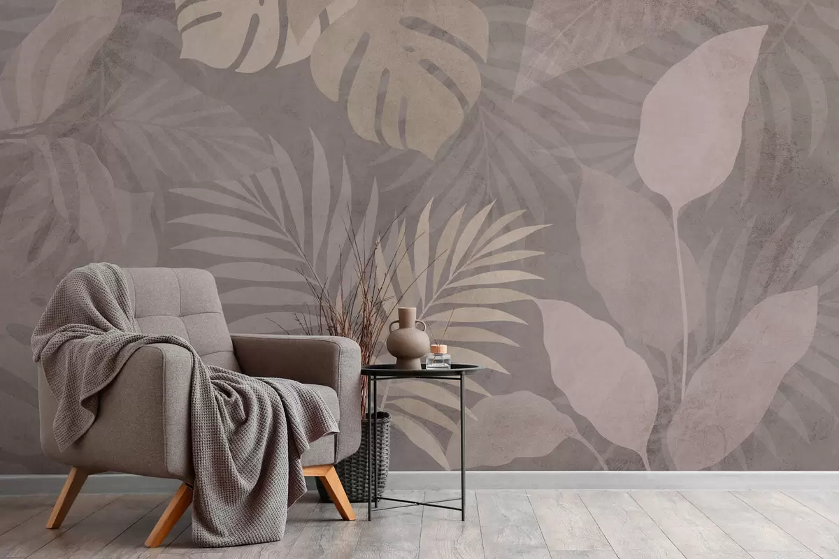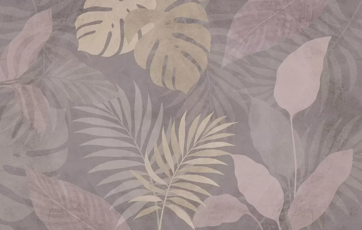 Fotomurales Hojas tropicales con textura sobre fondo gris. Nr. w05063v1
