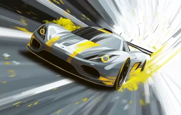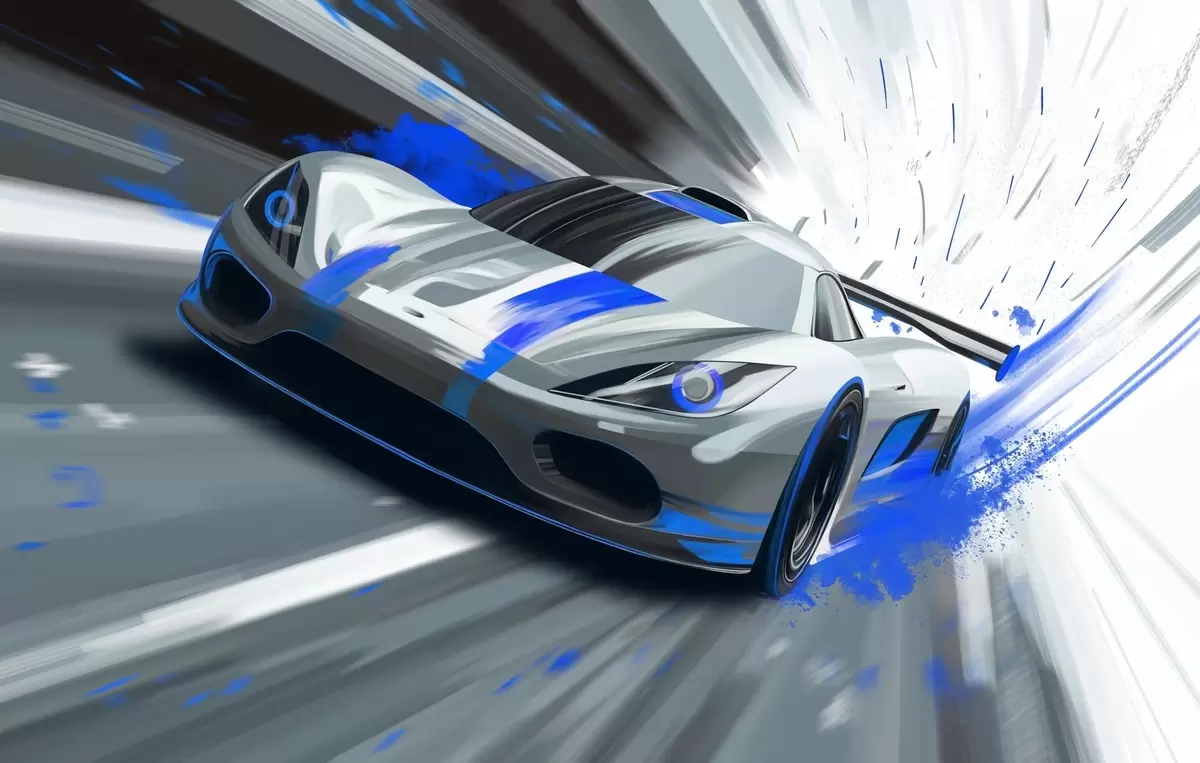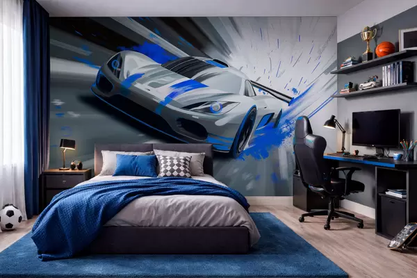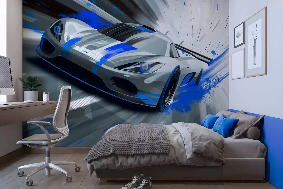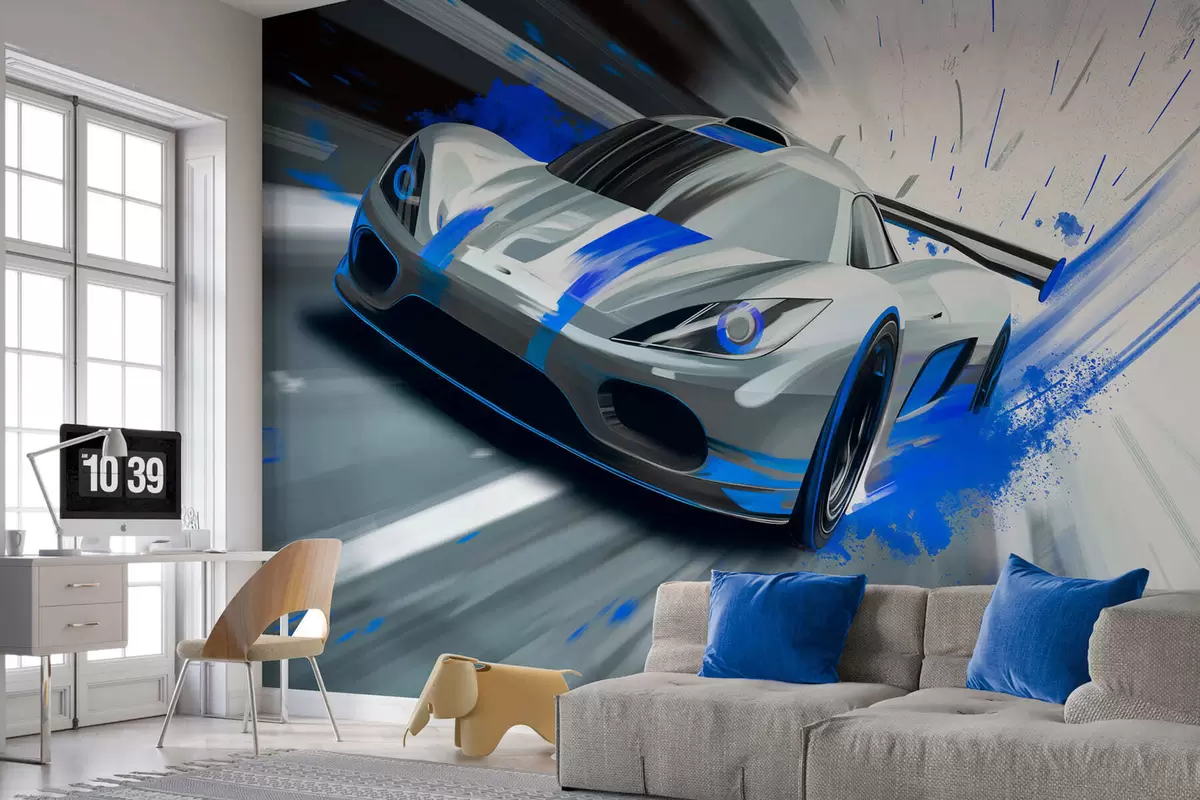 Fotomurales Coche deportivo dinámico en estilo de dibujo digital con detalles en azul. Nr. w05069
