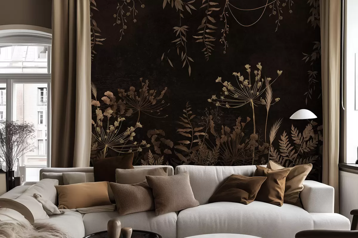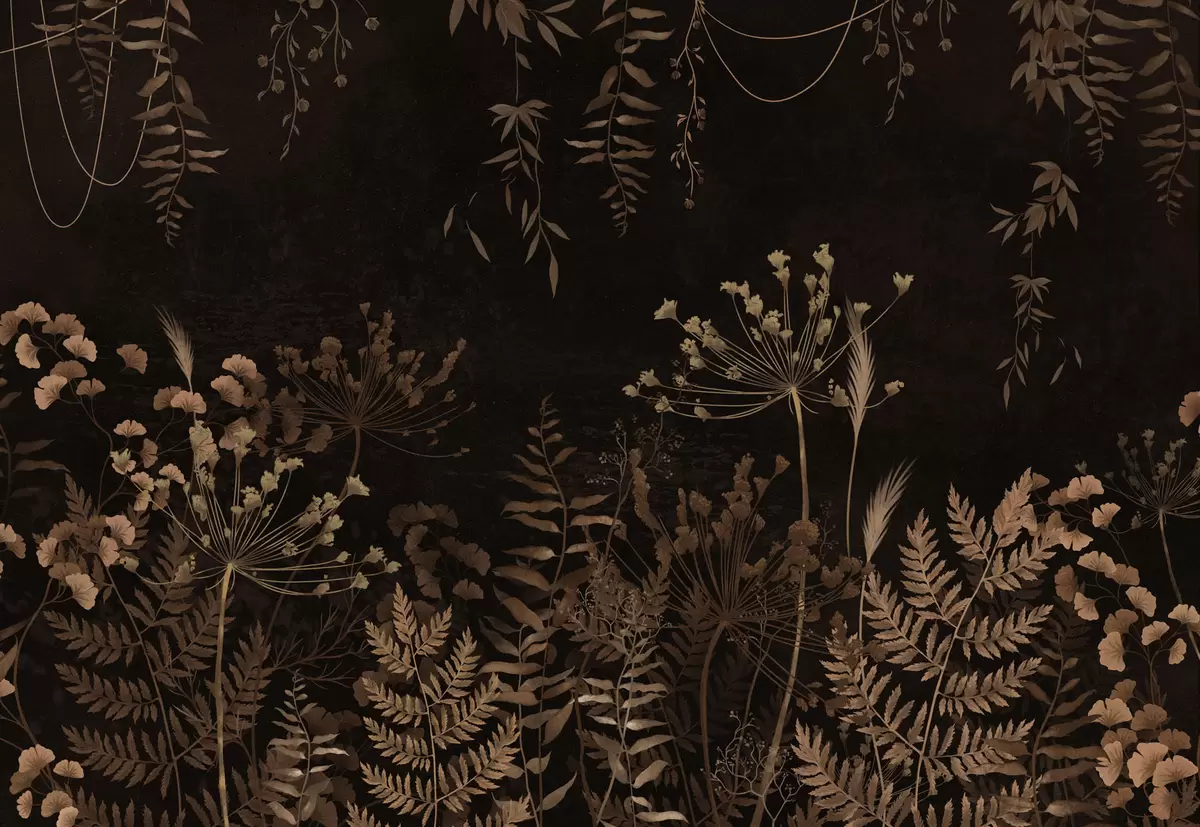 Fotomurales Diseño botánico oscuro con flores y hierbas. Nr. w05092v3