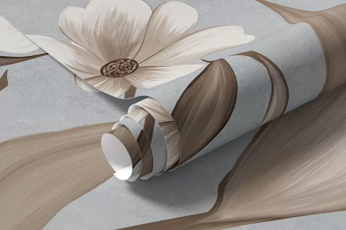 Fotomurales Flores y pájaros sobre un fondo gris azulado Nr. w05118v2