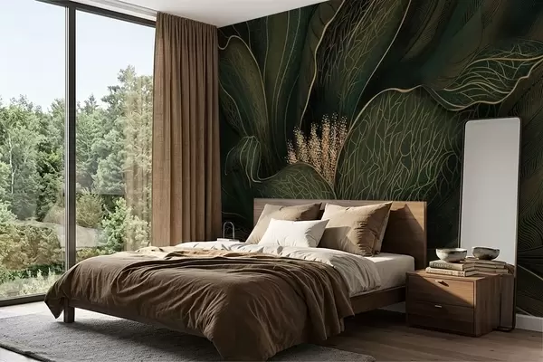 Fotomurales Flor abstracta de color verde oscuro con detalles de líneas finas Nr. w05119v1
