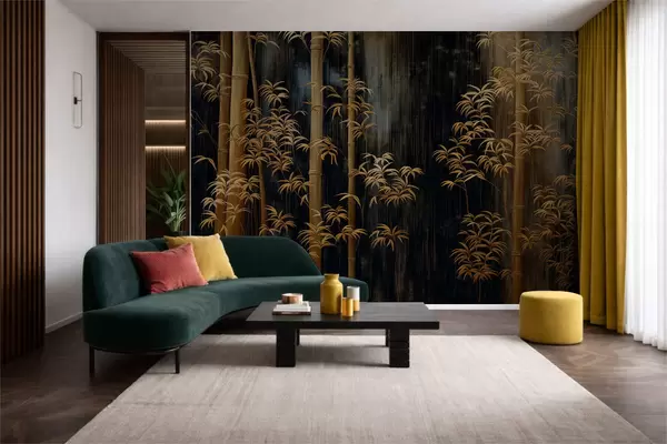 Fotomurales Bambú oscuro sobre fondo negro Nr. w05120