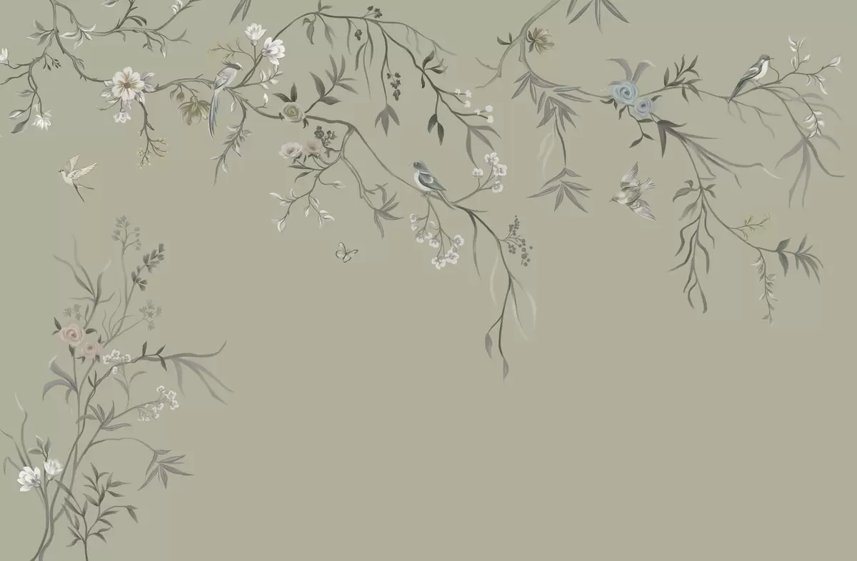 Fotomurales Diseño floral con pájaros sobre fondo fresco Nr. w05127v6