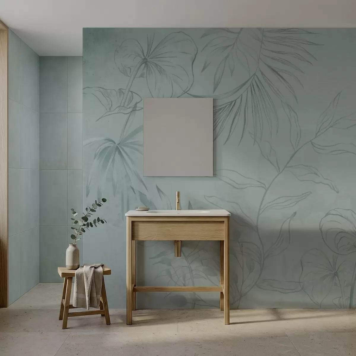 murales de pared Plantas lineales sobre fondo verde suave w05128v1