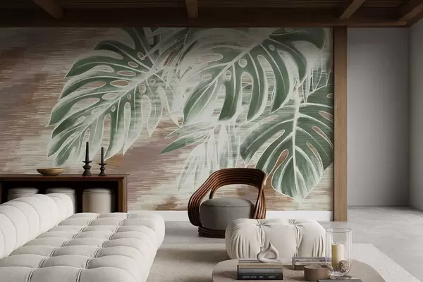 Fotomurales Hojas verdes sobre una base abstracta de textura cálida. Nr. w05130v3