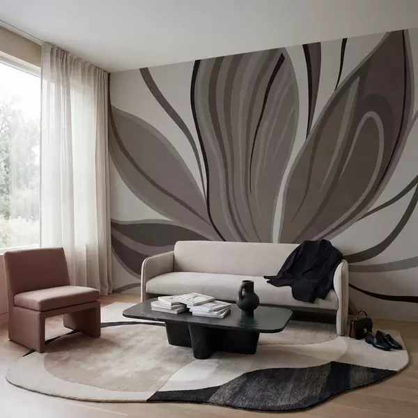 Fotomurales Flor abstracta con líneas suaves en tonos gris-beige Nr. w05147v1