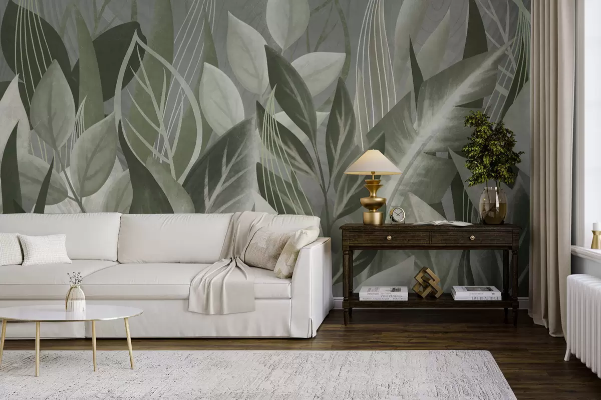 Fotomurales Hojas abstractas en tonos gris verdosos Nr. w05148v1