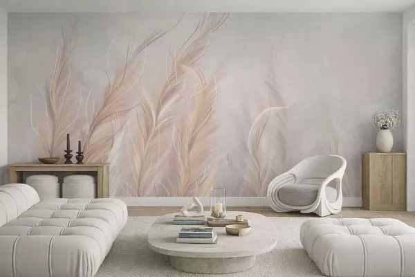 Fotomurales Plumas suaves y abstractas en tonos neutros claros. Nr. w05153