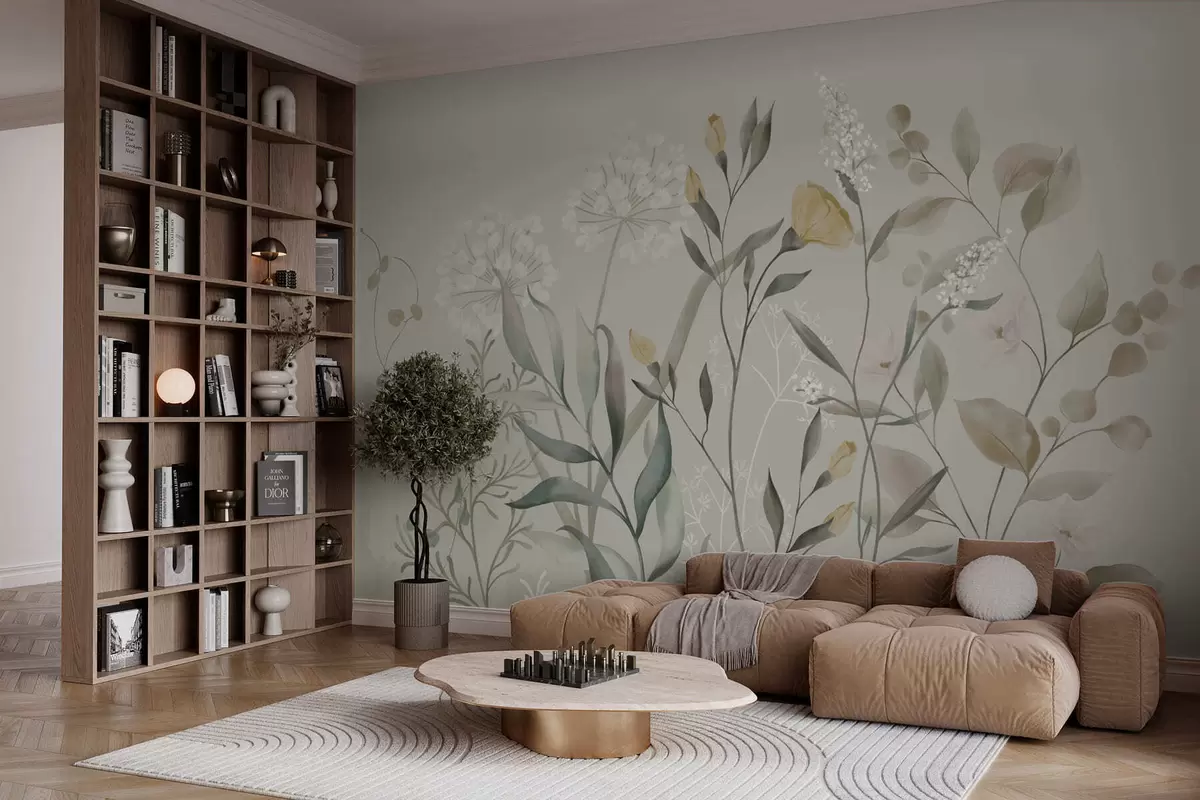 Fotomurales Plantas con detalles amarillos sobre un fondo claro. Nr. w05154v1