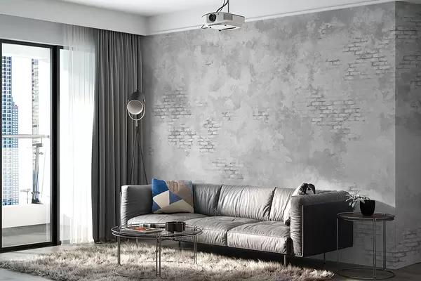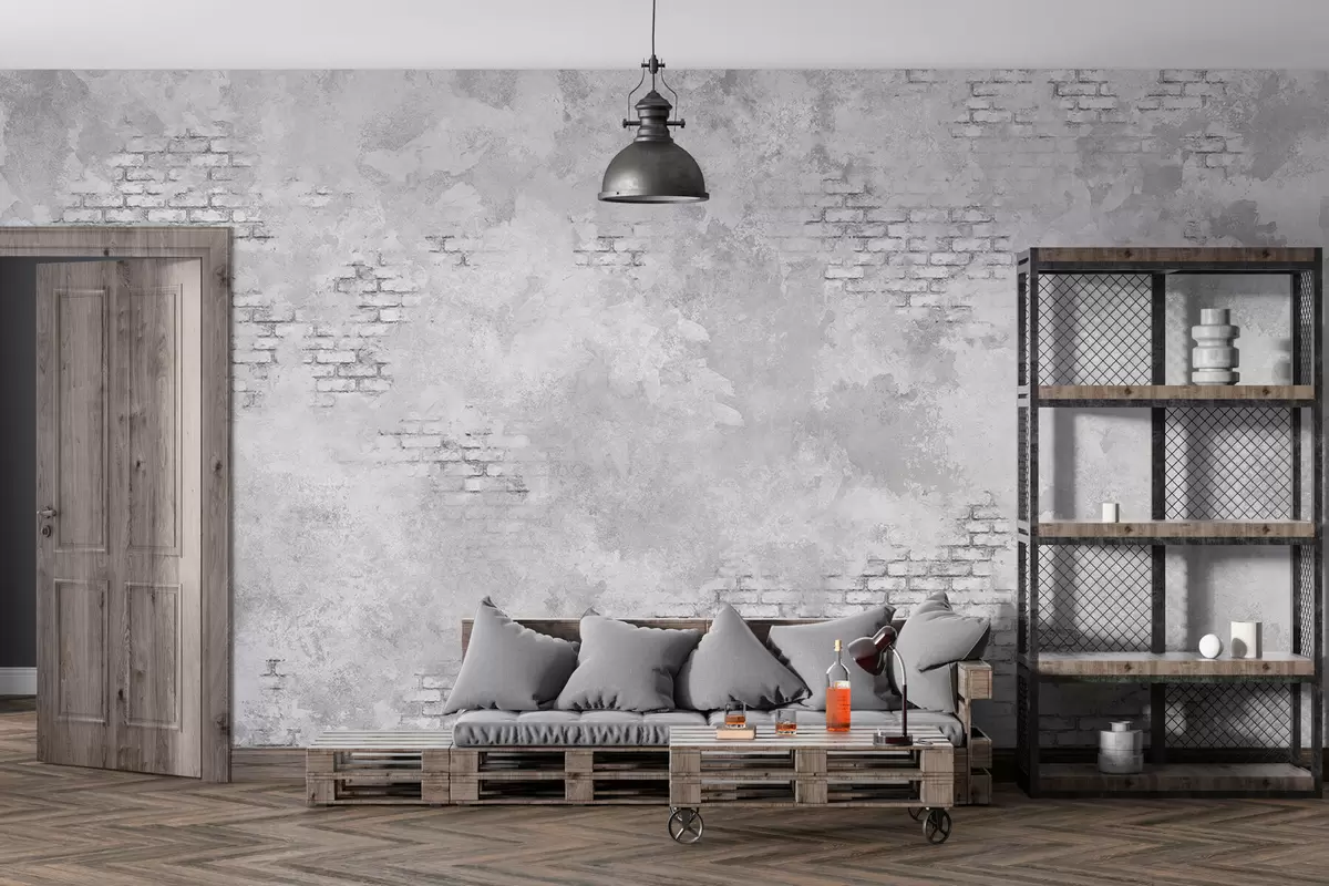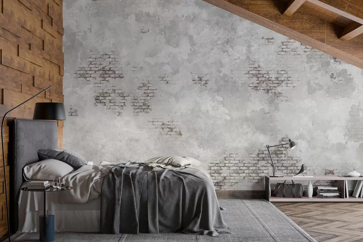 Fotomurales Yeso gris de estilo grunge con zonas de ladrillo visto Nr. w05161v2