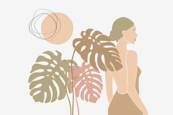 Fotomurales Silueta de una mujer cerca de hojas tropicales Nr. w05192