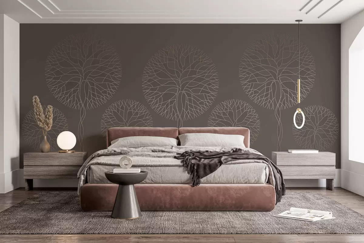 Fotomurales Árboles lineales fantásticos con copas frondosas en elegantes tonos moca. Nr. w05213v1