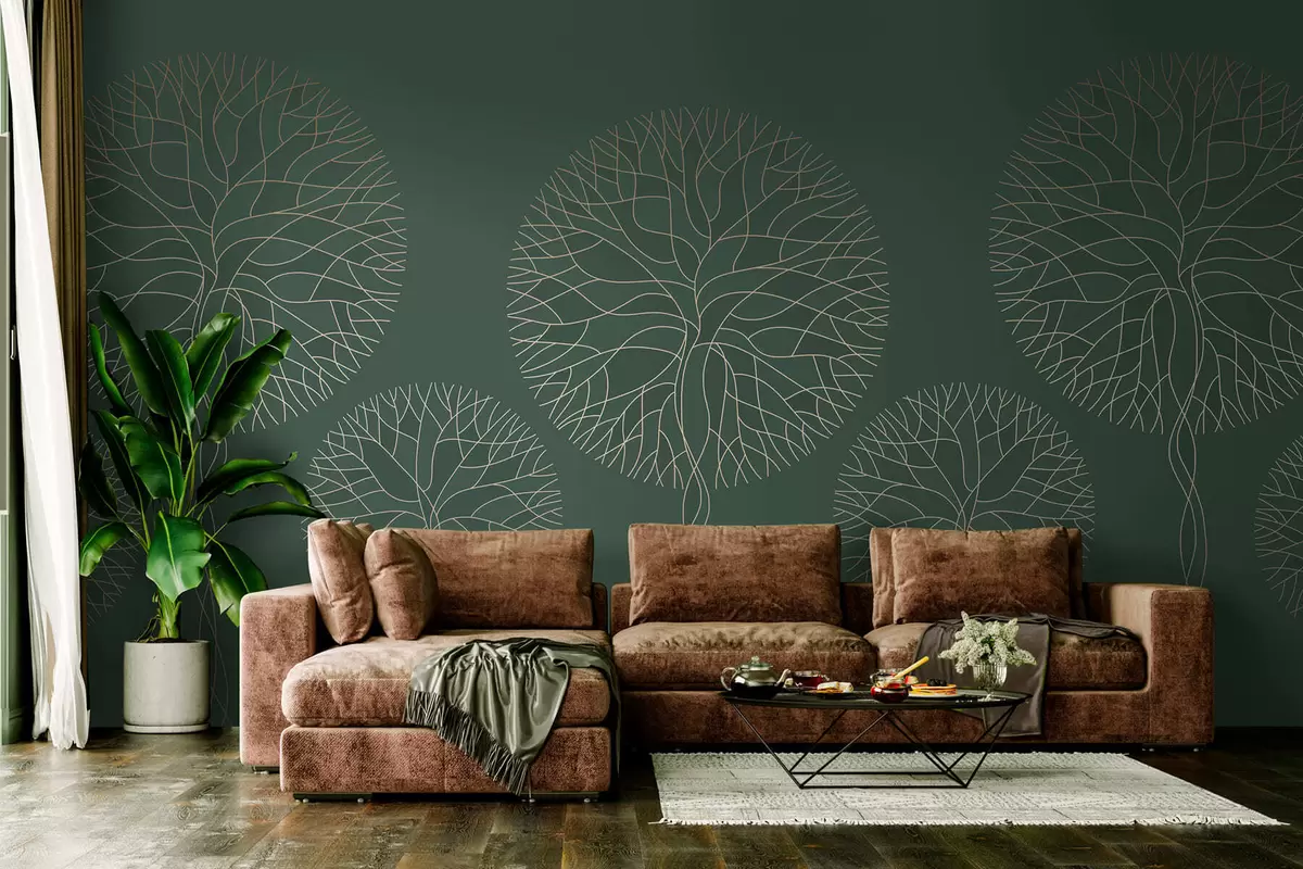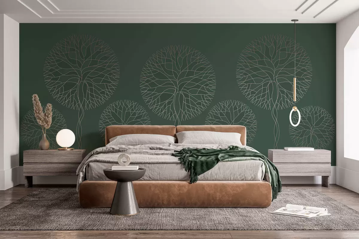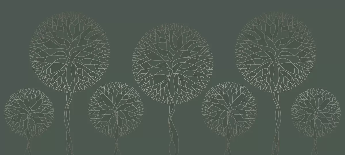 Fotomurales Árboles lineales fantásticos con copas frondosas en elegantes tonos verde oscuro. Nr. w05213v2