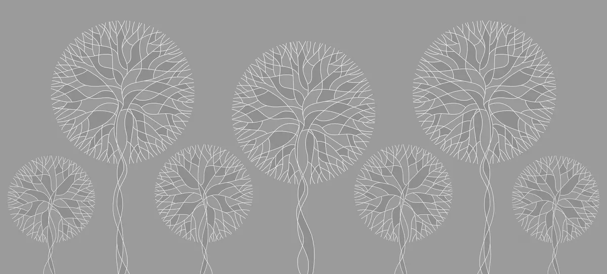 Fotomurales Árboles lineales fantásticos con copas frondosas en tonos grises medios. Nr. w05213v5
