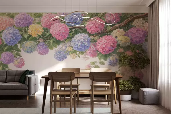 Fotomurales Hortensias pintadas cuelgan hacia abajo. Nr. w05250