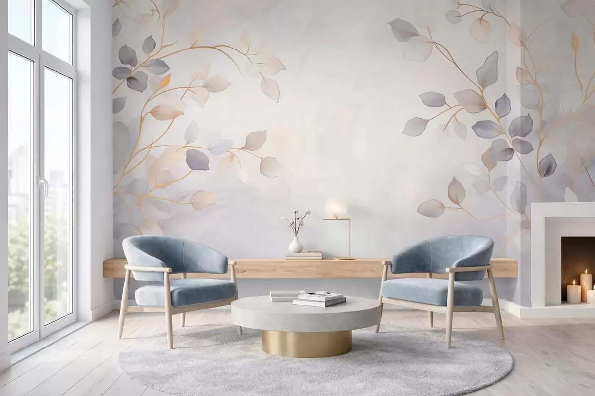 Fotomurales Ramas frondosas y delicadas sobre un fondo suave y difuminado Nr. w05296