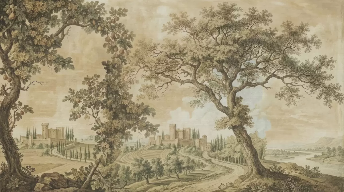 Fotomurales Paisaje pastoral en estilo bordado Nr. w05359