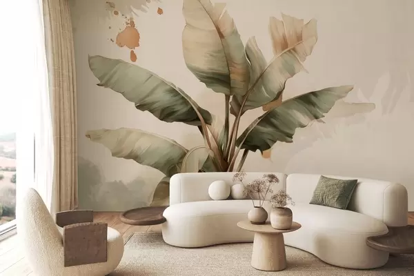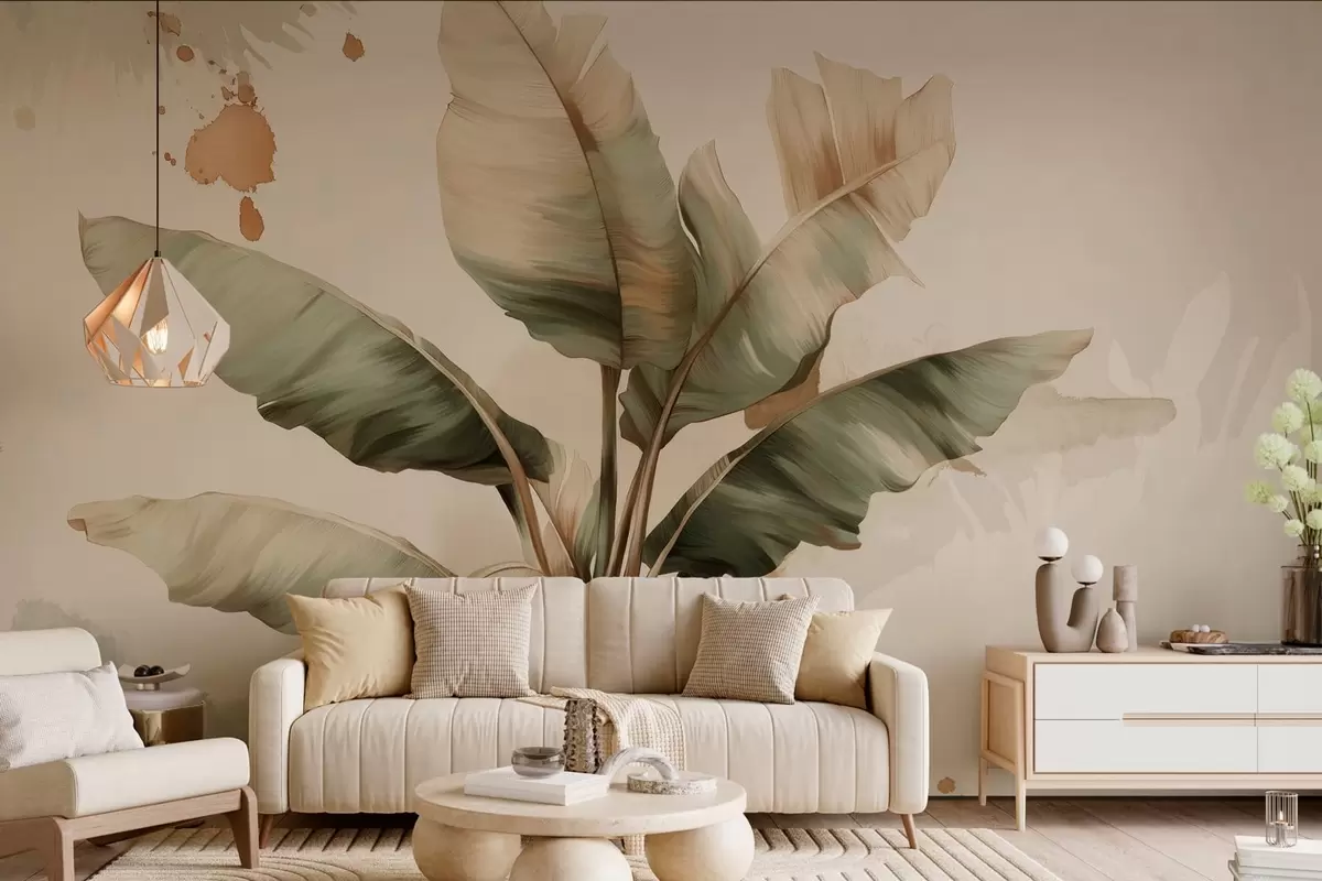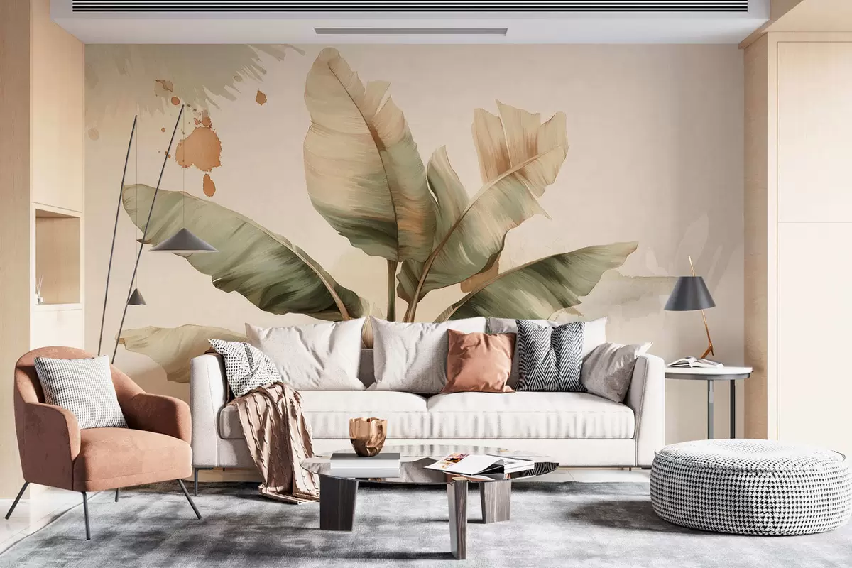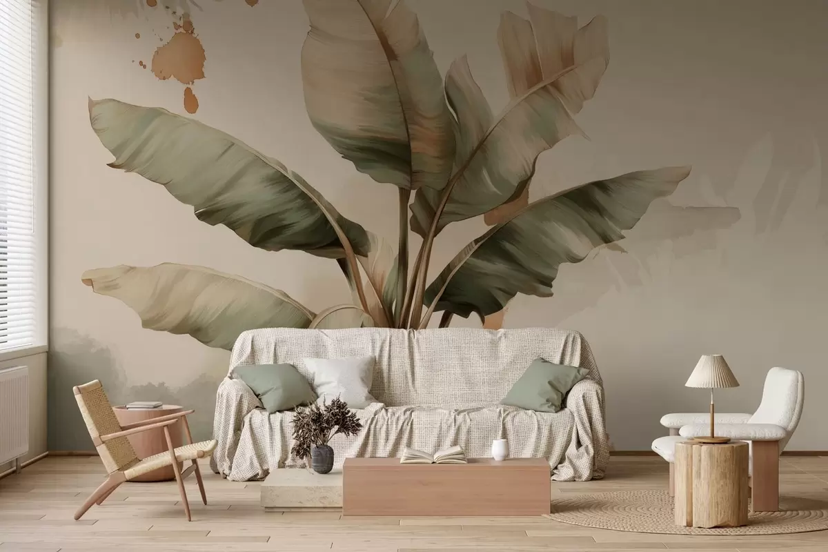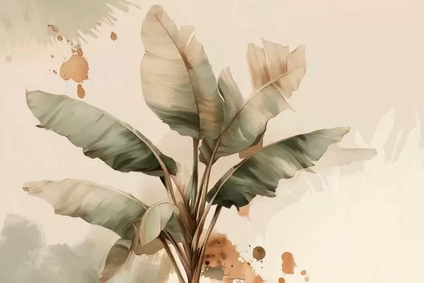 Fotomurales un gran y pintoresco racimo de hojas de plátano con toques de estilo retro Nr. w05384