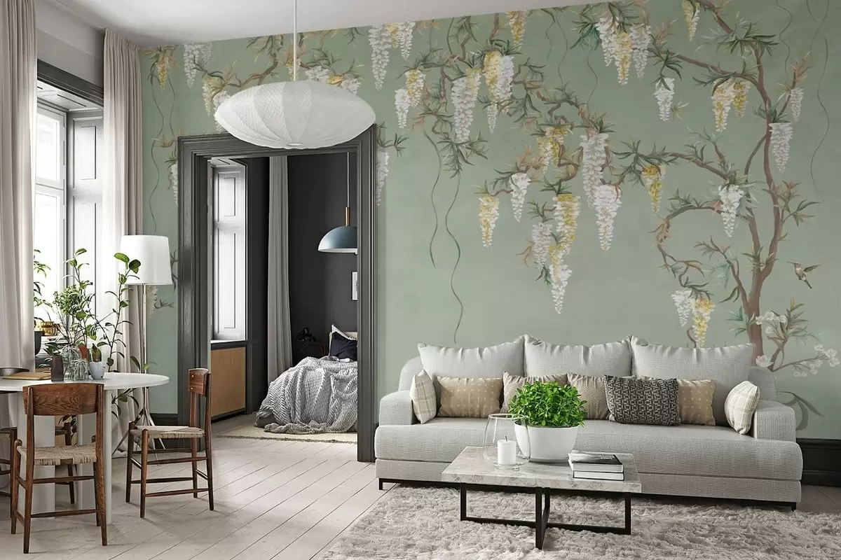 Se puede limpiar suavemente con una esponja suave. Los murales de pared con recubrimiento de barniz pueden limpiarse con agua.