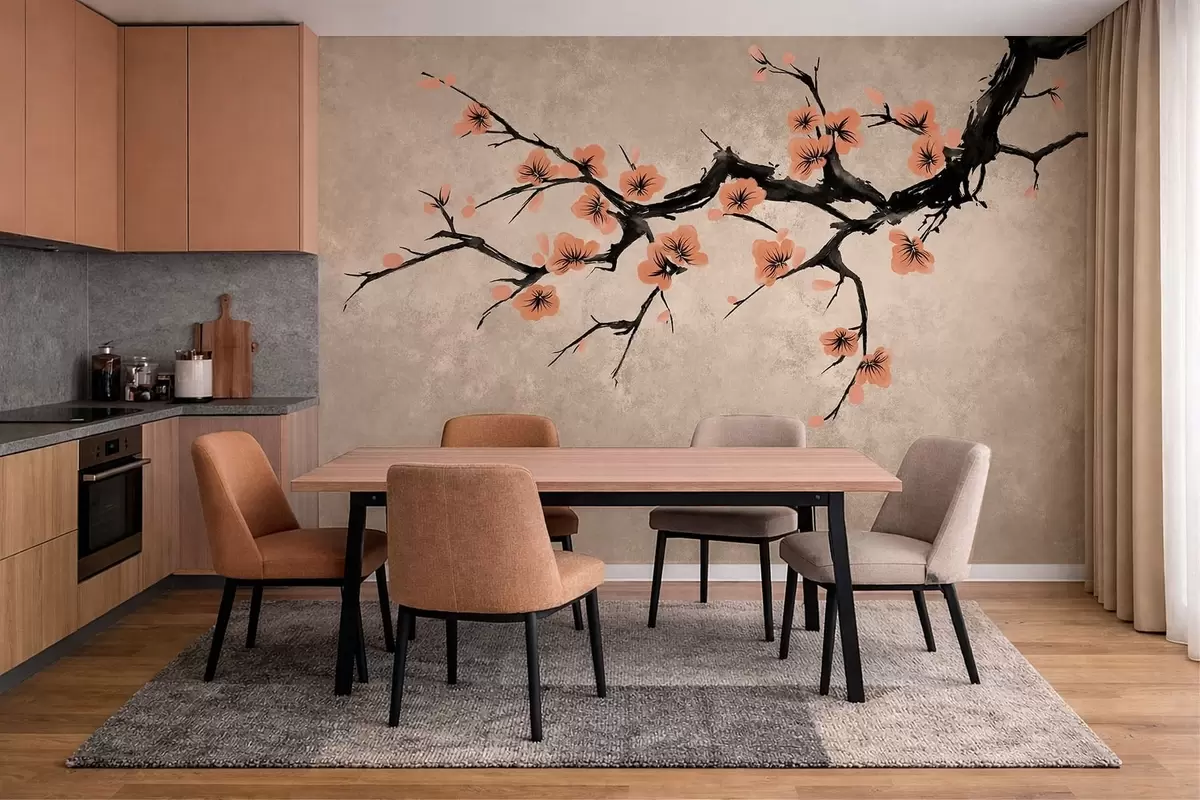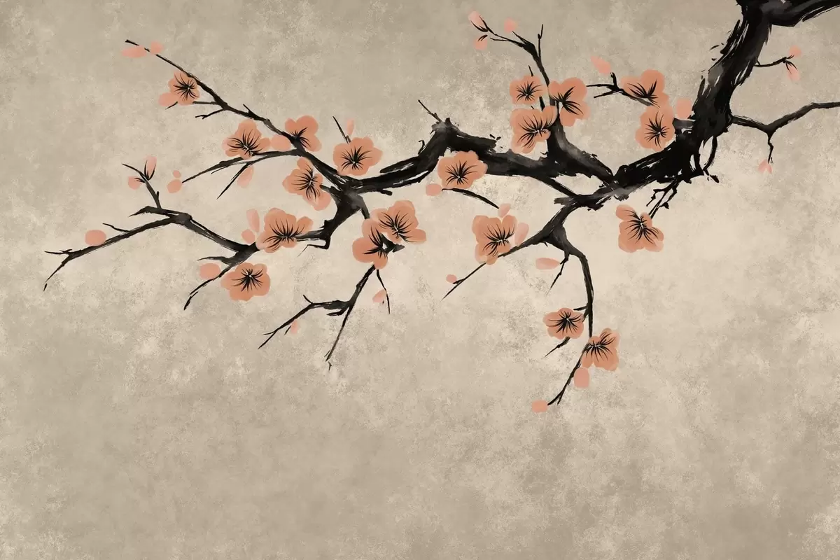 Fotomurales Rama con flores de melocotonero sobre un fondo texturizado Nr. w05425v3