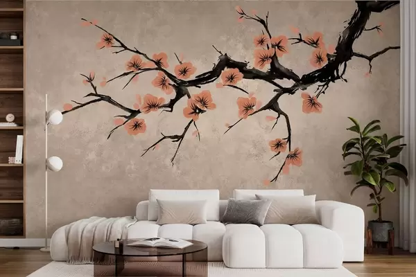 Fotomurales Rama con flores de melocotonero sobre un fondo texturizado Nr. w05425v3