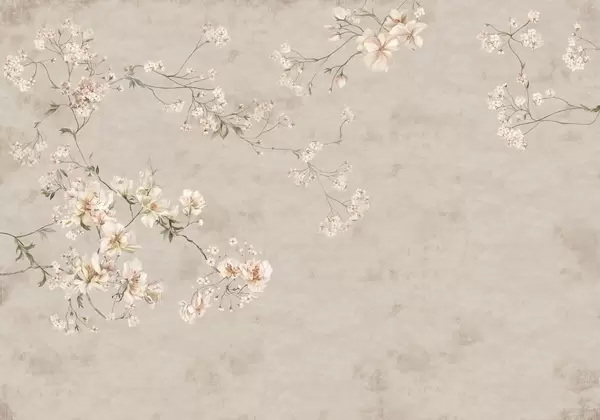 Fotomurales Ramas florales delicadas de estilo chinoiserie sobre fondo claro Nr. w05427