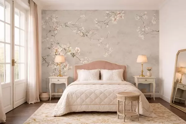 Fotomurales Ramas florales delicadas de estilo chinoiserie sobre fondo claro Nr. w05427