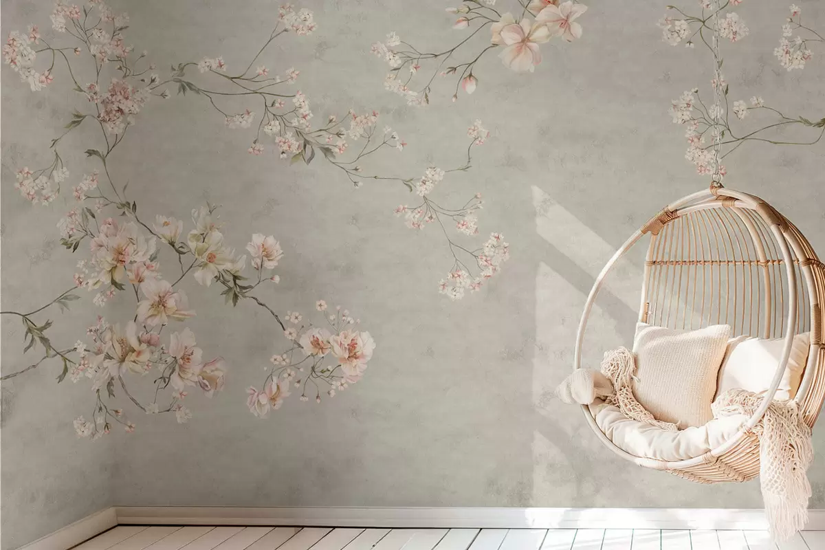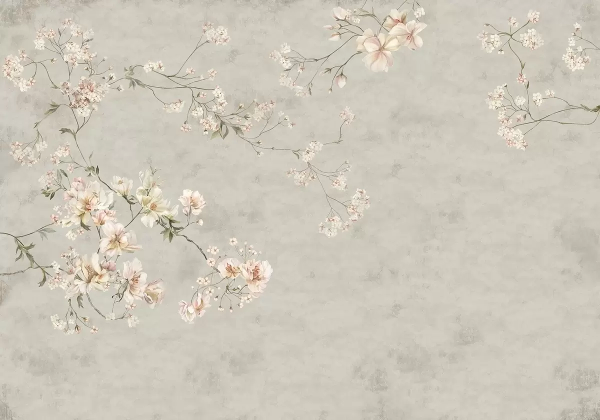 Fotomurales Ramas florales de estilo chinoiserie sobre fondo gris Nr. w05427v1