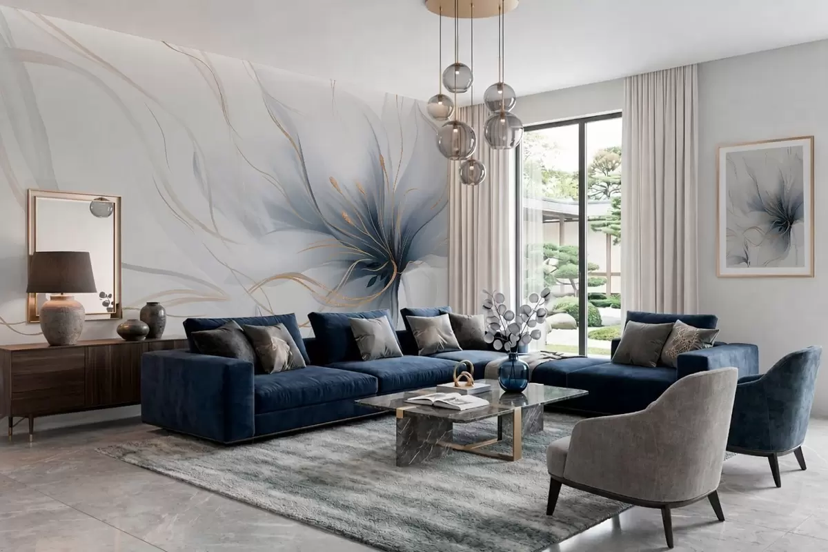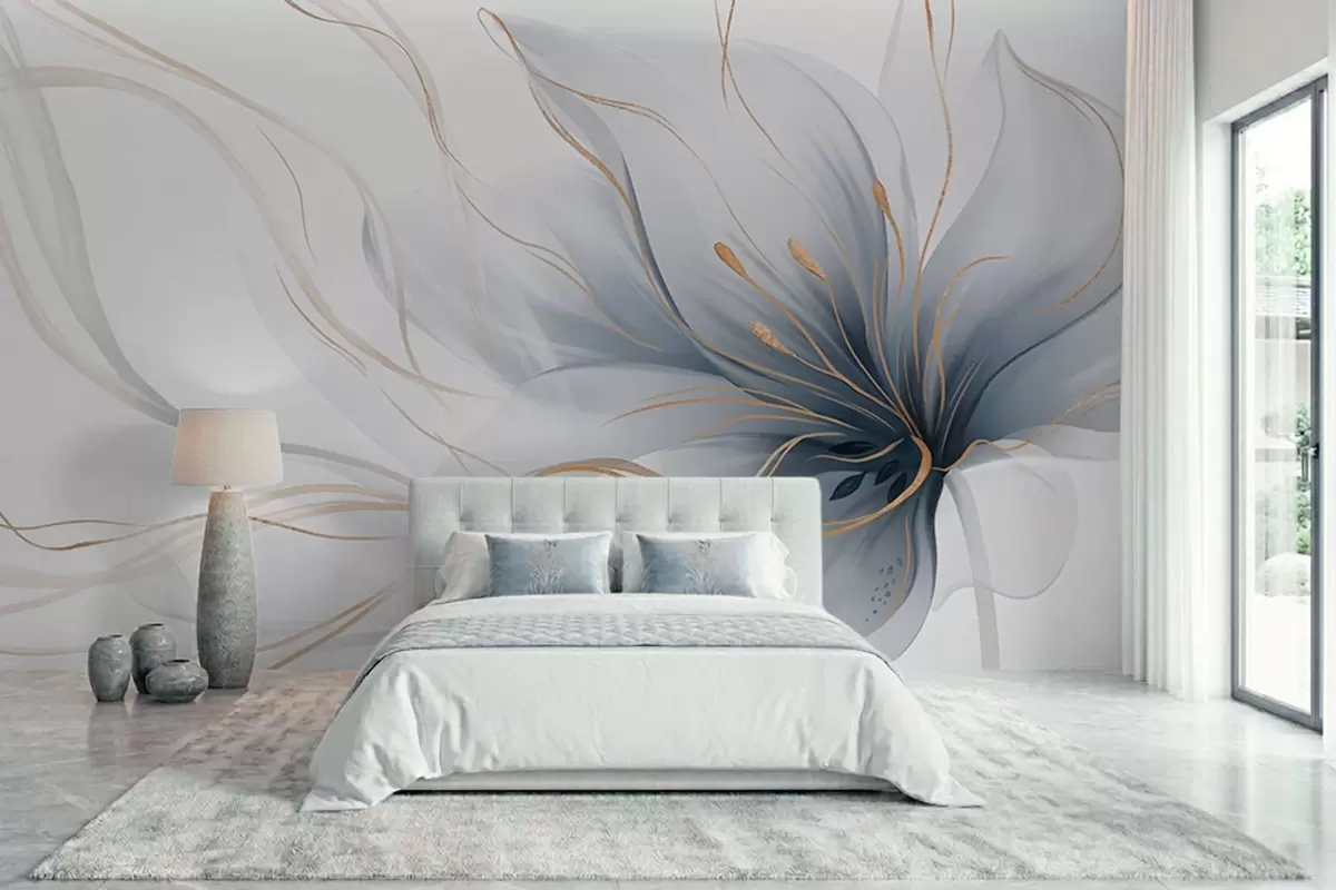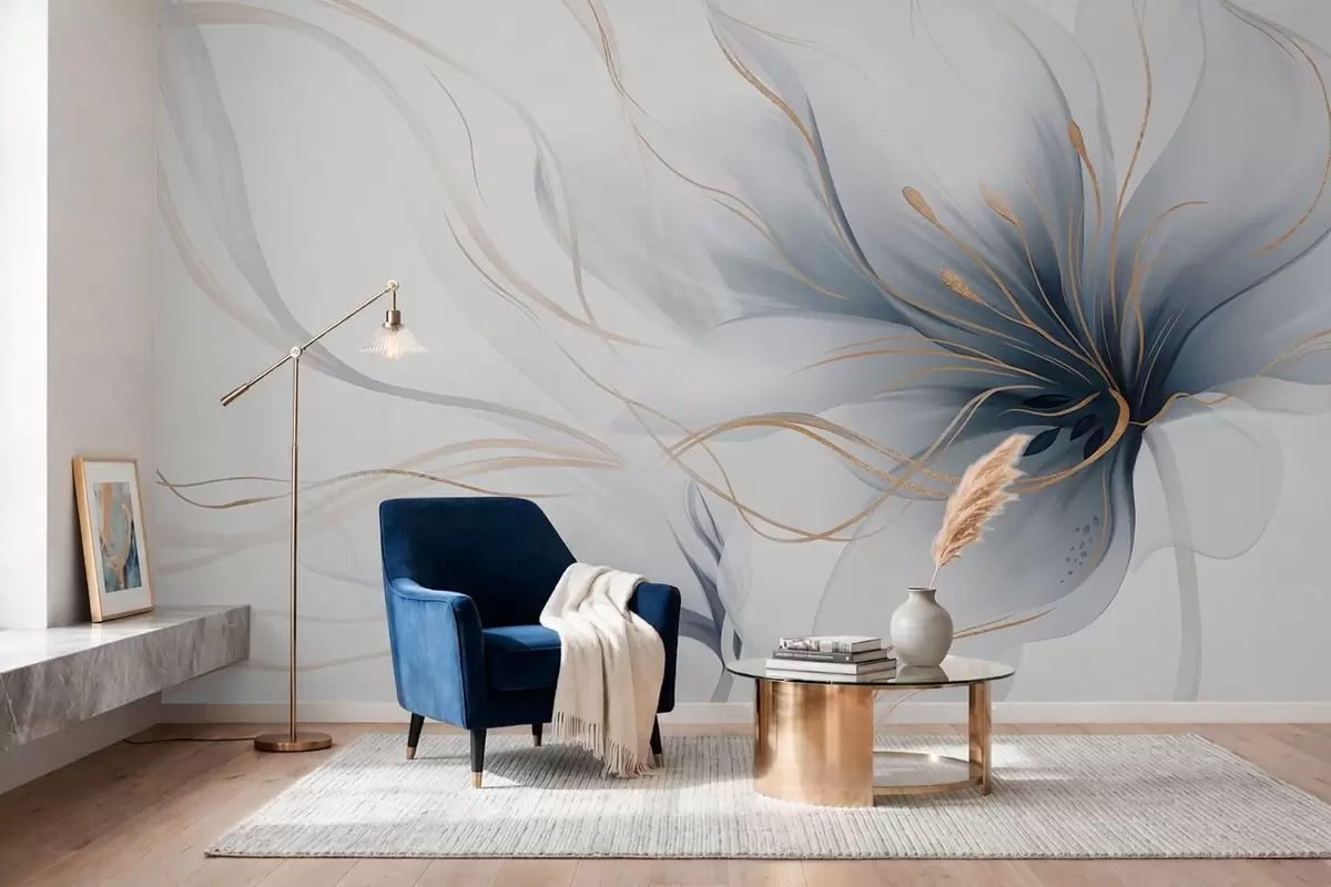 Fotomurales Una flor azul abstracta con líneas fluidas al estilo del arte fluido Nr. w05428