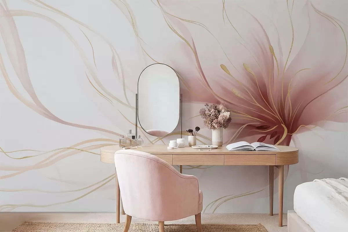 Fotomurales Una flor rosa abstracta con líneas fluidas al estilo del arte fluido Nr. w05428v1