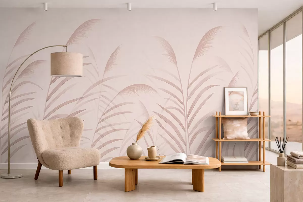 Fotomurales Hierbas minimalistas en suaves tonos rosados Nr. w05432v2