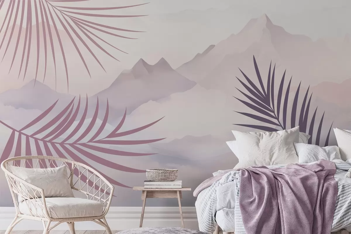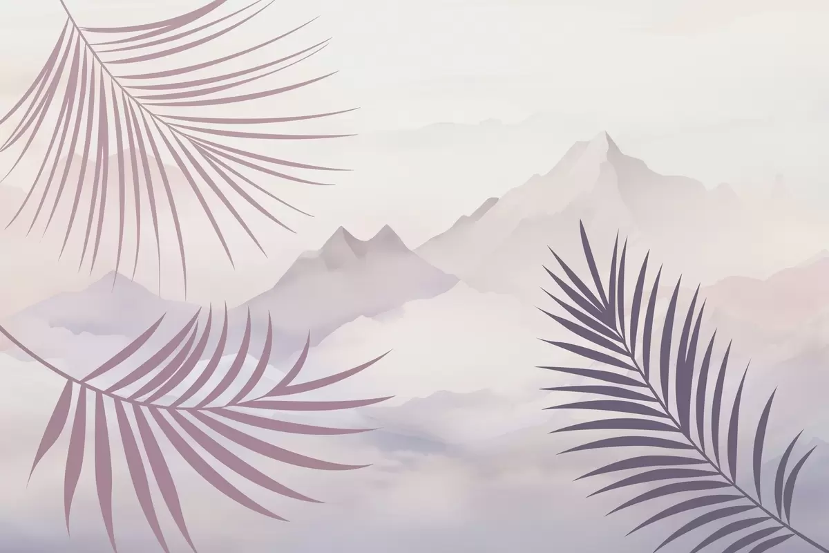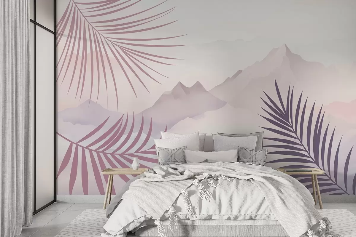 Fotomurales Hojas de palmera con las montañas de fondo Nr. w05548v1