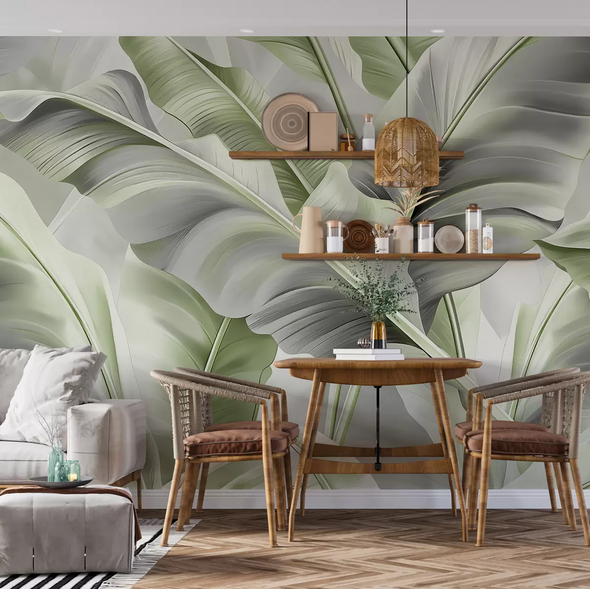 Fotomurales lujosas hojas de plátano grandes en tonos gris verdosos Nr. w07876v3