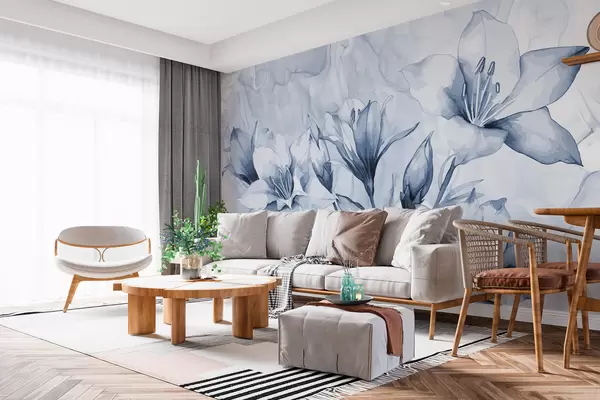 Fotomurales Flores azules sobre fondo azul Nr. w07897