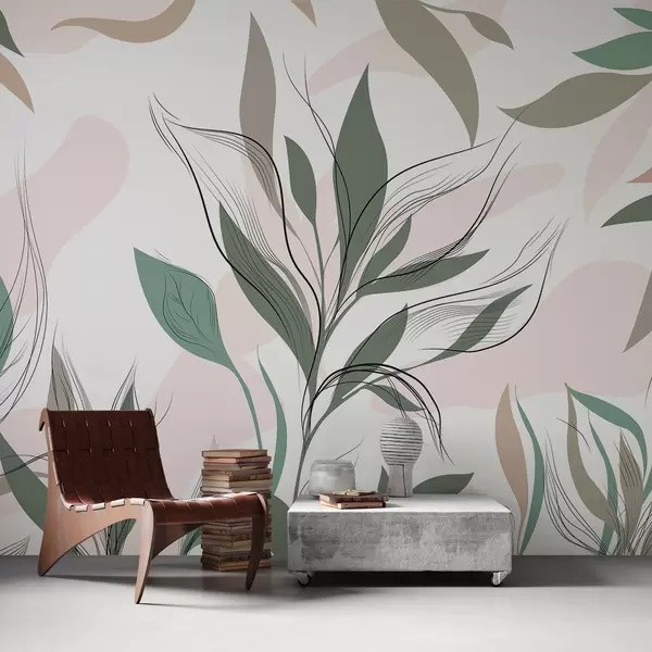 Fotomurales Hojas tropicales en técnica de líneas y colores pastel. Nr. w08051