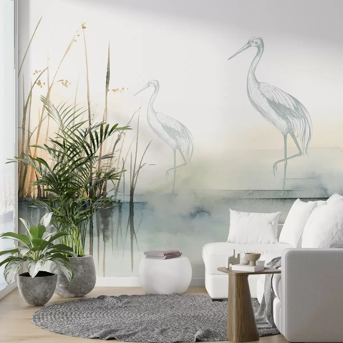 Fotomurales Cañas y garzas de acuarela. Nr. w08078